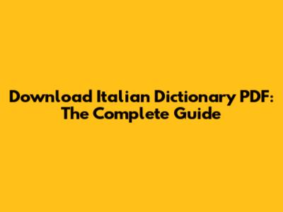 Download Italian Dictionary PDF: The Complete Guide