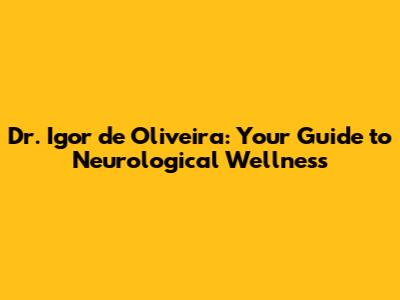 Dr. Igor De Oliveira: Your Neurological Health Partner