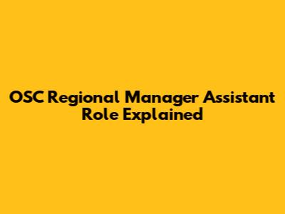 OSC Regional Manager Assistant Role Explained