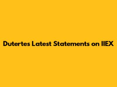 Duterte's Latest Statements On IIEX