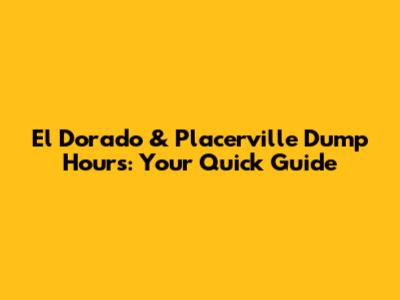 El Dorado & Placerville Dump Hours: Your Quick Guide