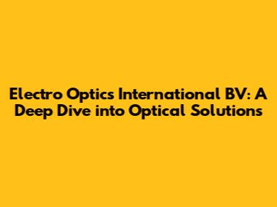 Electro Optics International BV: Expertise In Optics