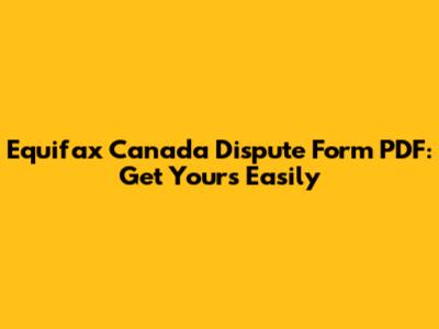 Equifax Canada Dispute Form PDF: Get Yours Easily