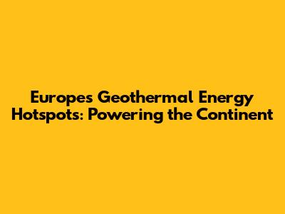 Europe's Geothermal Energy Hotspots: Powering The Continent