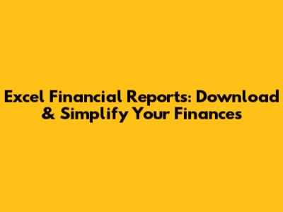 Excel Financial Reports: Download & Simplify Your Finances