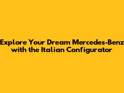 Hey guys! Are you dreaming of cruising down the Italian Riviera in a sleek, new Mercedes-Benz? Well, you're in luck! The Mercedes-Benz Italia Configurator is your ultimate tool to build and visualize your perfect car. In this article, we'll dive deep into how to use this amazing configurator, explore its features, and give you some insider tips to make the most of your car-building experience. Get ready to unleash your inner car designer and create the Mercedes-Benz of your dreams! The Mercedes-Benz Italia Configurator offers a user-friendly interface, allowing you to customize everything from the exterior color and interior trim to the engine and optional features. It's like having your own personal auto stylist right at your fingertips. You can experiment with different combinations, see how they look, and get a realistic sense of what your finished car will be. This is a game-changer for car buyers, providing a level of personalization that was once unimaginable.