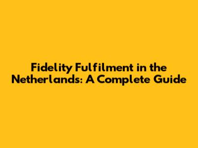 Fidelity Fulfilment In The Netherlands: A Complete Guide