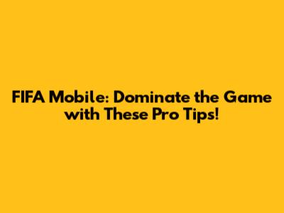 FIFA Mobile: Dominate The Game With These Pro Tips!