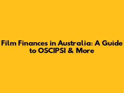 Film Finances In Australia: A Guide To OSCIPSI & More