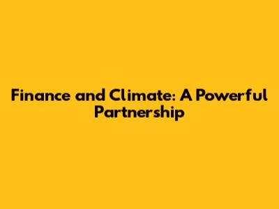 Finance And Climate: A Powerful Partnership