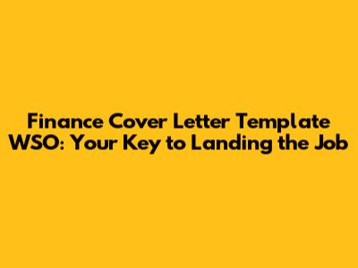 Finance Cover Letter Template WSO: Your Key To Landing The Job