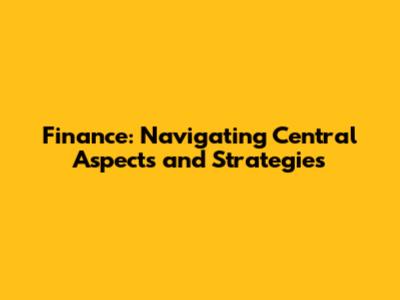 Finance: Navigating Central Aspects And Strategies
