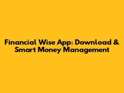 Financial Wise App: Download & Smart Money Management