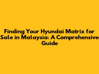 Where to Find a Hyundai Matrix for Sale in Malaysia