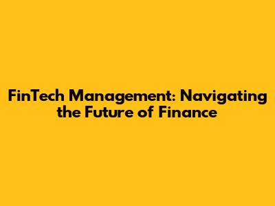 FinTech Management: Navigating The Future Of Finance
