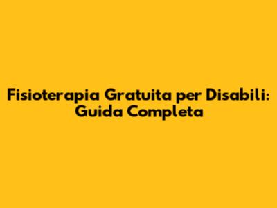 Fisioterapia Gratuita Per Disabili: Guida Completa