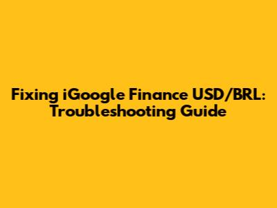 Fixing IGoogle Finance USD/BRL: Troubleshooting Guide