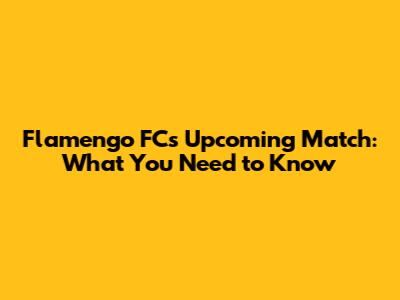 Flamengo FC's Upcoming Match: What You Need To Know
