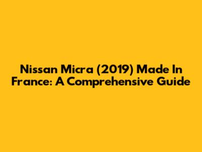 Nissan Micra (2019) Made In France: A Comprehensive Guide