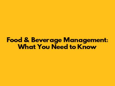 What is Food and Beverage Management?