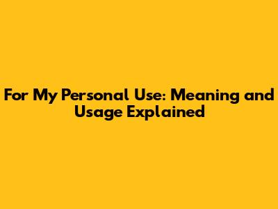 For My Personal Use: Meaning And Usage Explained