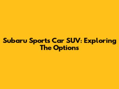Subaru Sports Car SUV: Exploring The Options