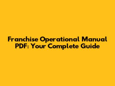 Franchise Operational Manual PDF: Your Complete Guide