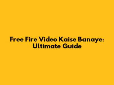 Free Fire Video Kaise Banaye: Ultimate Guide