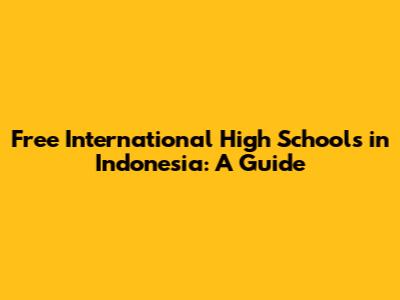 Free International High Schools In Indonesia: A Guide