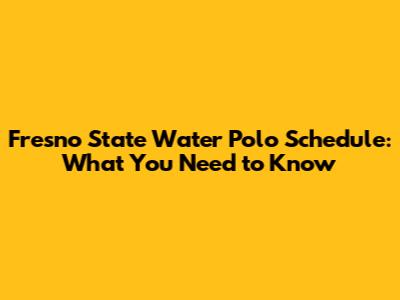 Fresno State Water Polo Schedule: What You Need To Know