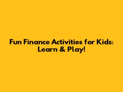 Fun Finance Activities For Kids: Learn & Play!