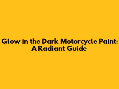 Glow In The Dark Motorcycle Paint: A Radiant Guide