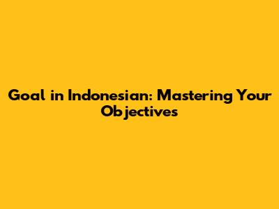 Goal In Indonesian: Mastering Your Objectives