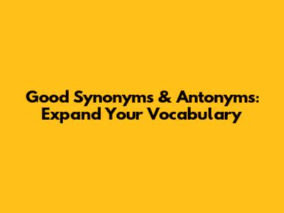 Good Synonyms & Antonyms: Expand Your Vocabulary