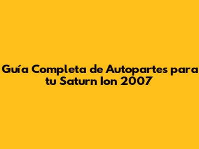 Guía Completa De Autopartes Para Tu Saturn Ion 2007