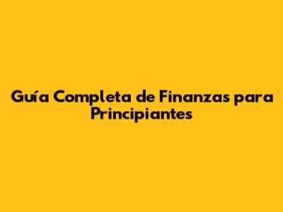 Guía Completa De Finanzas Para Principiantes