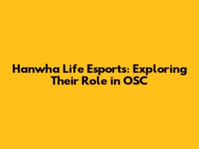 Hanwha Life Esports: Exploring Their Role In OSC