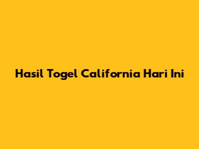 Hasil Togel California Hari Ini