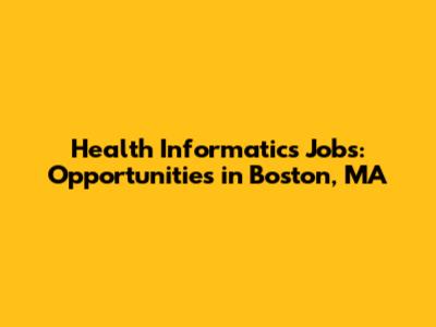 Health informatics jobs in Boston, MA offer a promising career path for those passionate about healthcare and technology. With its thriving healthcare and tech industries, Boston provides a wealth of opportunities for skilled health informatics professionals. By developing the necessary skills, pursuing relevant education and training, and utilizing effective job search strategies, you can land your dream job in this exciting field. Keep learning, stay connected, and embrace the opportunities that Boston has to offer!
