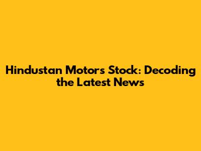 Hindustan Motors Stock: Latest News & Updates