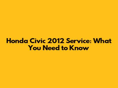 Honda Civic 2012 Service: What You Need To Know