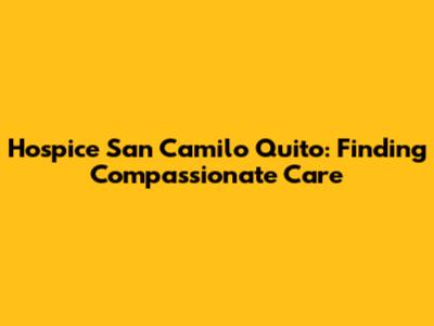 Hospice San Camilo Quito: Your Guide To Compassionate Care