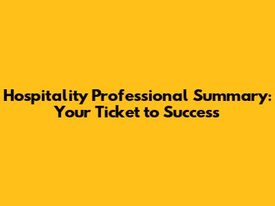 So, you're in the hospitality game, huh? Awesome! It's a world of fast-paced action, amazing people, and the chance to make someone's day, every single day. But landing that dream job? That's where a killer hospitality professional summary comes in. Think of it as your first impression, your handshake, your chance to shout, "Hey, I'm the hospitality rockstar you've been looking for!" Let's dive into how to craft a summary that'll make you shine brighter than a newly polished hotel lobby.