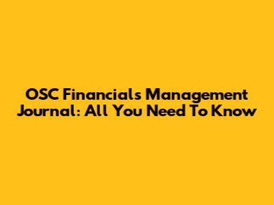 OSC Financials Management Journal: All You Need To Know