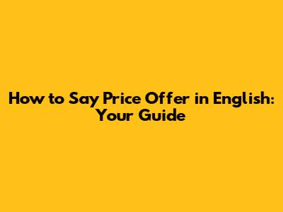 How To Say 'Price Offer' In English: Your Guide