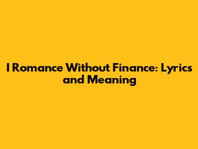I Romance Without Finance: Lyrics And Meaning