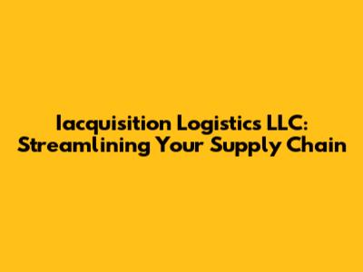In today's fast-paced business world, efficient logistics are the backbone of any successful operation. Iacquisition Logistics LLC emerges as a pivotal player, offering comprehensive solutions designed to streamline your supply chain and drive your business forward. Let's dive into the specifics of what Iacquisition Logistics LLC does and how they can help you optimize your logistics processes.
