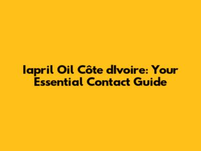 Iapril Oil Côte D'Ivoire: Your Essential Contact Guide