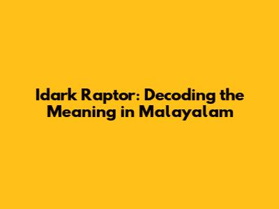 Idark Raptor: Unveiling Its Meaning In Malayalam