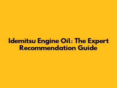 Idemitsu Engine Oil: The Expert Recommendation Guide